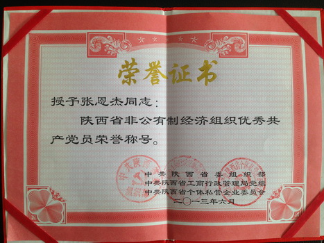 金風(fēng)送爽,丹桂飄香。在這個(gè)收獲的季節(jié)里,公司黨支部書記、董事長兼總經(jīng)理張恩杰喜獲中共陜西省委組織部、中共陜西省工商行政管理局黨組、中共陜西省個(gè)體私營企業(yè)委員會聯(lián)合表彰的全省“非公有制經(jīng)濟(jì)組織優(yōu)秀共產(chǎn)黨員”,這項(xiàng)殊榮不僅是對他工作的認(rèn)同,同時(shí)也是盛源公司的榮譽(yù),也是對盛源公司黨建工作在促進(jìn)經(jīng)濟(jì)快速發(fā)展、社會和諧穩(wěn)定中發(fā)揮的戰(zhàn)斗堡壘和先鋒模范作用的肯定。